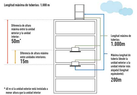 Con sus 1.000 metros de tubería, la serie ECOi-EX incorpora dos grandes novedades: la posibilidad de alcanzar los 30 metros de altura entre unidades interiores y los 200 metros de distancia entre una unidad interior y la unidad exterior. Esto facilita la instalación de estos sistemas en grandes edificios como estaciones de tren, aeropuertos, escuelas y hospitales. Las unidades de ECOi-EX ofrecen además módulos de libre combinación como 8HP & 10HP, 12HP & 14HP & 16HP.