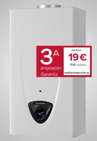 ARISTON, pensando siempre en el bienestar del usuario, le ofrece la posibilidad de ampliar la garantía de su calentador contra todo defecto de fabricación con 3 AÑOS de cobertura total y 10% de descuento en mano de obra y piezas de por vida (www.ampliaciongarantia.es) por sólo 19 €.