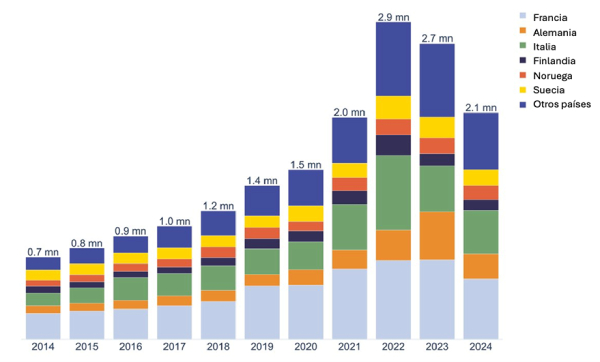 Ventas totales de 2014 a 2024 de 14 países europeos