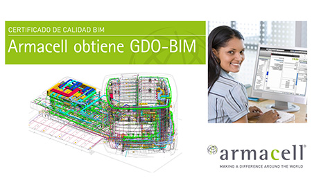 El certificado GDO-BIM obtenido por Armacell, garantiza que los archivos BIM (Building Information Modeling) han sido desarrollados con un software compatible con BIM, versión e idioma elegidos, y que respetan los Derechos de Propiedad Intelectual (Copyright), contienen los datos gráficos óptimos (utilizables en entornos de LOD 100 a 500), cumplen con la Estructura (parámetros) y Trazabilidad de Datos que se requiere en un proyecto BIM (utilizables en Fases 1 a 8) conforme al Estándar de Desarrollo de Objetos BIM (GDO-BIM).