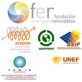 Fundación Renovables, Greenpeace, EolicCat, Fundación Ecología y Desarrollo, Fundación Equo, WWF España, CCOO, Fundación Desarrollo Sostenible, Asociación Solar de la Industria Térmica, Ecologistas en Acción, Asociación de Ciencias Ambientales, ECOOO, Asociación Empresarial Fotovoltaica, Asociación de la Industria Fotovoltaica, Protermosolar, Federación Nacional de Empresarios de Instalaciones Eléctricas y Telecomunicaciones de España, Revista Energías Renovables, EUROSOLAR España, Ecoserveis, Día de la Terra Catalunya, Una Sola Terra, Alternativa Verda, Athanor, Sinapsis, Eolpop S.L., Unión Española Fotovoltaica (UNEF), Asociación Empresarial de Energías Renovables y Ahorro Energético de la Región de Murcia, Solarweb.net, Grupo de Abastecimiento Energético (GAE), MCA-UGT, Amigos de la Tierra, ARE (Alliance for Rural Electrification), Fundación Terra, Luz Verde, Grupo de Científicos y Técnicos por un futuro no nuclear, AVEBIOM (Asociación Española de Valorización Energética de la Biomasa), Solar News, Enática Energías Renovables, S.L.