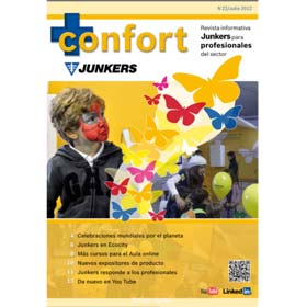 Junkers, marca perteneciente a la división Termotecnia del Grupo Bosch, acaba de publicar un nuevo número correspondiente a la edición de verano 2012 de su revista + Confort, que ofrece un contenido en el que destacan los siguientes temas: Celebraciones mundiales por la protección del medio ambiente; Junkers en Eco-City; Nuevos cursos técnicos online; Nuevos expositores de productos; Nuevo vídeo solar de Junkers en YouTube; Referencias, Jornadas y Eventos. Asimismo, en la sección “Técnica” se incluye la segunda parte sobre Innovación tecnológica y eficiencia energética de sistemas térmicos en viviendas (bombas de calor y calderas de condensación).