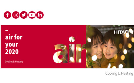 Hitachi Cooling & Heating anuncia su presencia en Linkedin, Youtube, Instagram, Facebook y Twitter. En Hitachi Cooling & Heating se acercan por primera vez al usuario final siguiendo su estrategia de cara al 2020 y años sucesivos. Según informa la compañía "nos estrenamos con una completa acción de comunicación en redes sociales: Linkedin, Youtube, Instagram, Facebook y Twitter".