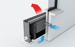 Ventilación con climatización Jaga OxygenJaga Oxygen es la novedosa solución de renovación del aire de Jaga que garantiza ambientes saludables y el confort térmico en cada espacio. Este sistema inteligente de renovación del aire, está preparado para integrarse de forma imperceptible dentro de los radiadores Low-H2O, centralizando en un mismo equipo la ventilación, calefacción y refrigeración requeridas en una estancia, o de forma independiente dentro de un armario, falso techo o en un mueble.